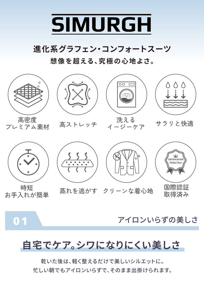 SIMURGHの背後には、数十年にわたりグローバル市場で実績を積み上げてきた、確かな技術力を誇る実力派繊維メーカーの経験と技術があります。私たちは常に「着る人の体験」をデザインの起点とし、あなたの想像を超えるような、全方位に快適な一着を届けることに尽力しています。