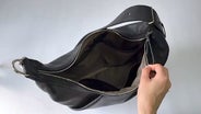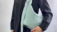 三日月型のショルダーバッグは直線型に比べてファスナーが長くなるので、開口部が大きく開くようになります。