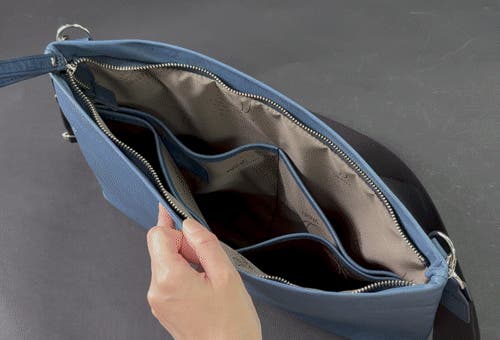 ファスナーが外から見えない構造なので、高級感を損ないません。