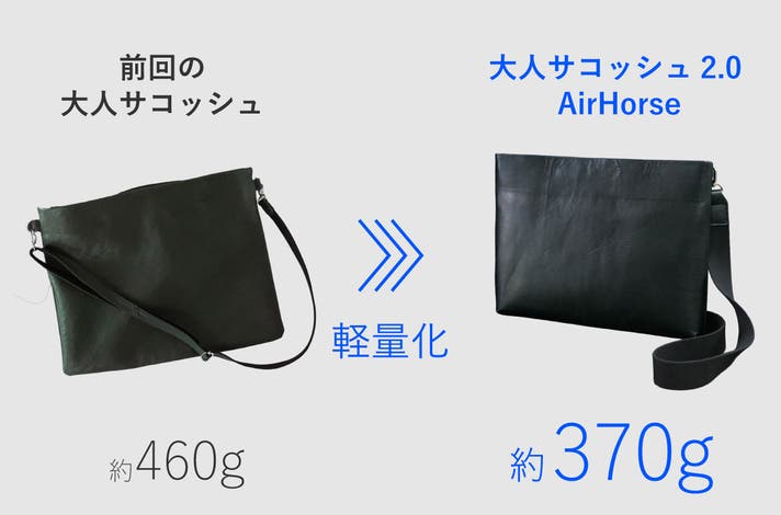 そんな声から軽さを追及して生まれたのが、【大人サコッシュ2.0-AirHorse-】です。