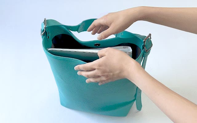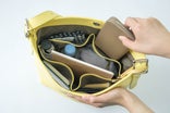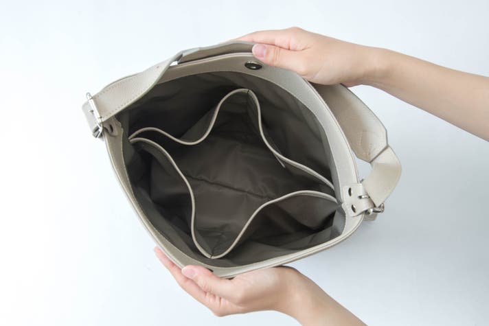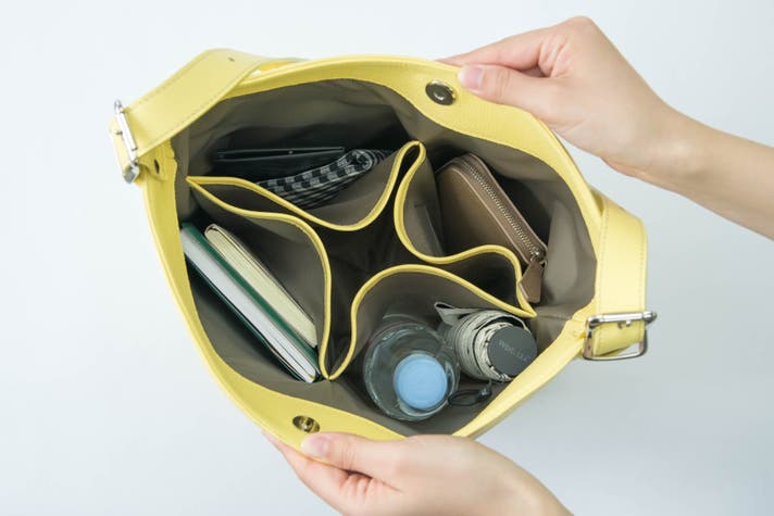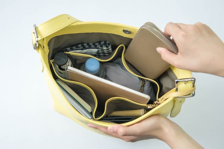 縦型バッグでありがちな、「荷物がごちゃつく…」「下にある物が取り出しにくい!」という事が解消され、素早く物を取り出すことができます。
