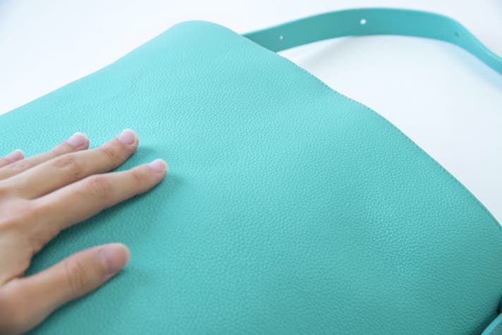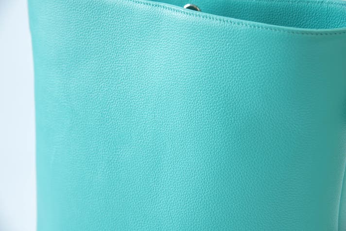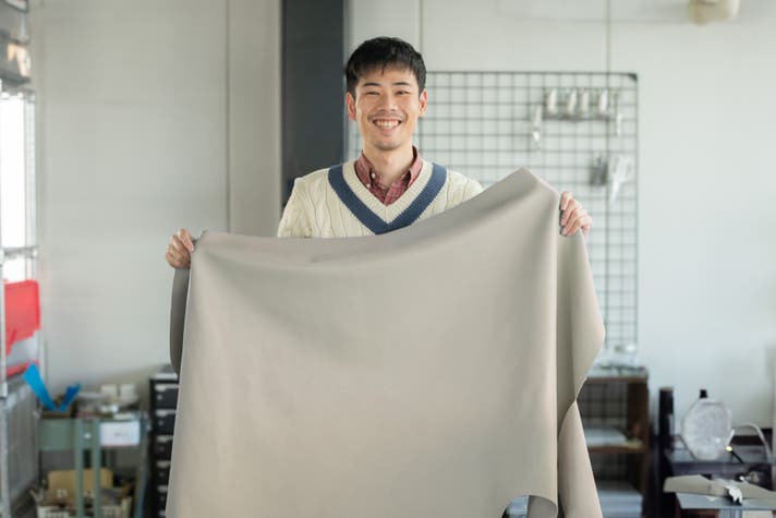 小さめのシボで半光沢の自然な表情を持つため、このバッグにピッタリと思い、採用しました!