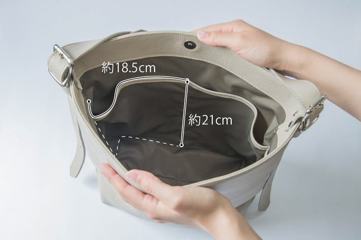 タテ型バッグの魅力である見た目のスマートさを保ちつつ、大容量の設計!