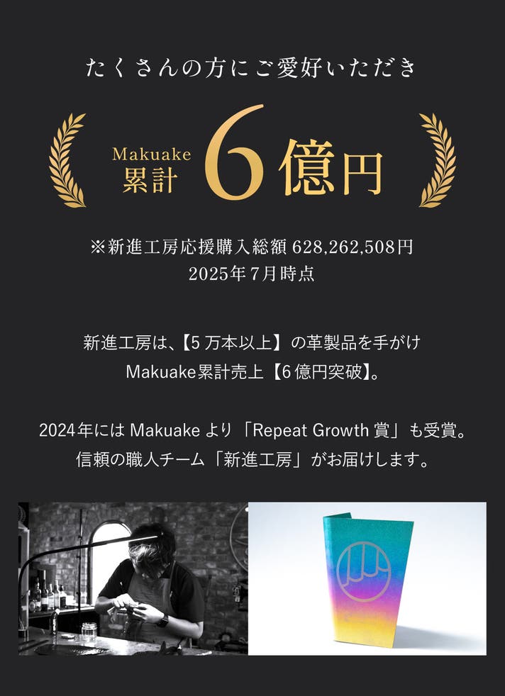 革職人グループである私たち「新進工房」は今までに5万本以上の革製品を製作し、販売した実績があります。新進工房は、Makuakeの応援購入実績6億円を突破いたしました!