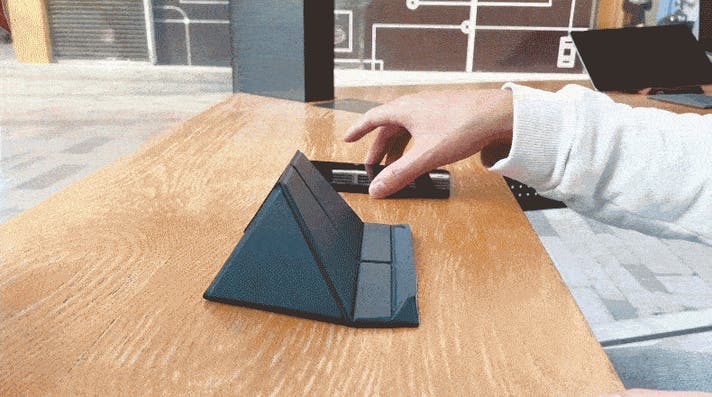 平面状態から三角形のスタンドへ。