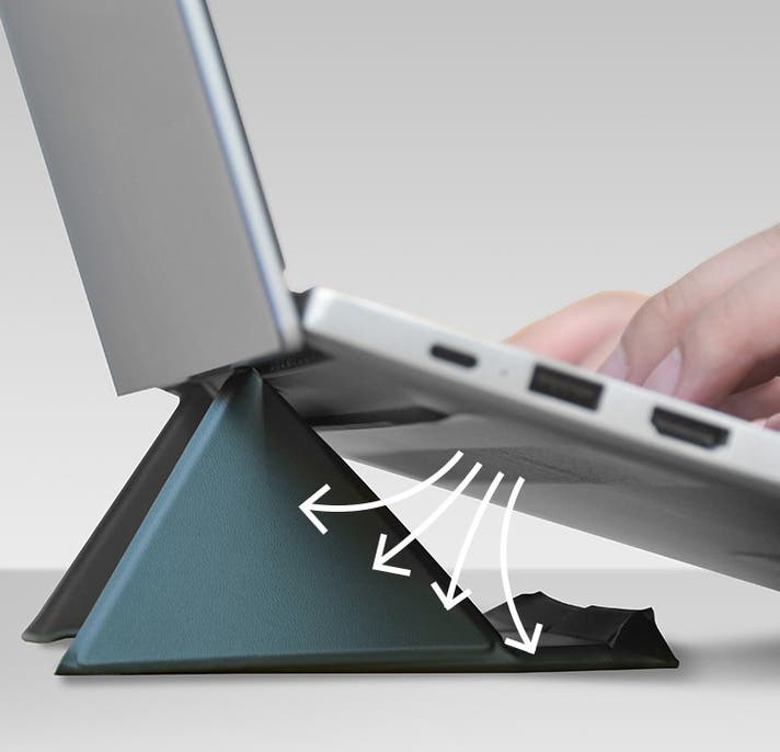 A:建築技術でも活用される「三角構造」を応用し、最大16インチのノートPCにも対応。想像以上の安定性を感じていただけます。