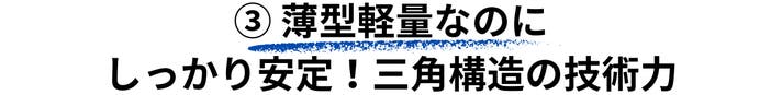 建築や工学の世界で最も安定した形状として知られる三角形の物理的な安定性を、極限まで薄い設計に組み込みました。
