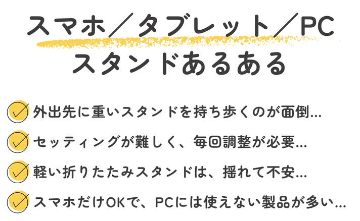 しかし、従来のスタンドは「重くて持ち運べない」「大きくて邪魔」 「小さいと不安定」という矛盾を抱えていました。