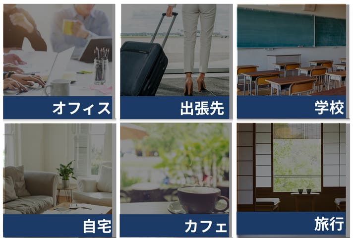 自宅、カフェ、図書館、学校、出張先...