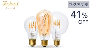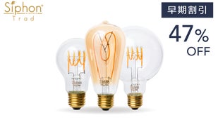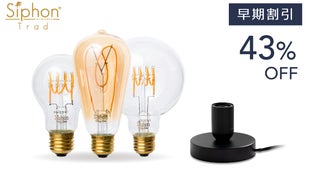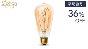 Siphon tradは、より電球の誕生当初に近いような特徴的なフィラメント型を持ち、点灯時はもちろん不点灯時にもインテリアとして十分すぎるほどのデザイン性を発揮します。