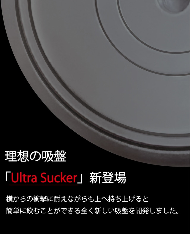 - 【超強力吸盤】横からの衝撃に強く、上には簡単に持ち上がる「Ultra Sucker」を開発!