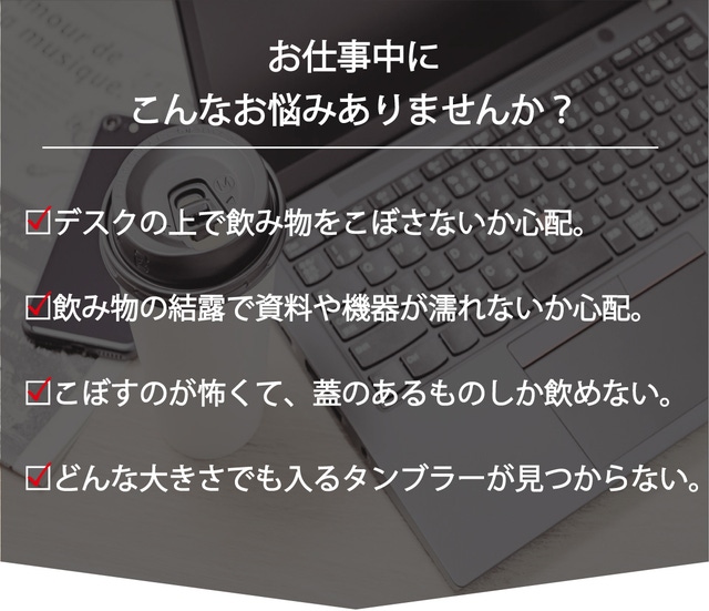 そんな時、「机の上に気軽に飲み物を置けて、ぶつかっても倒れない商品があったら最高じゃないか。」「世の中の、そもそも飲み物をこぼすのが怖くて机に置けない人たちを救えるのではないか。」と思ったのです。