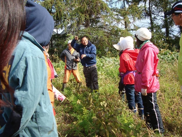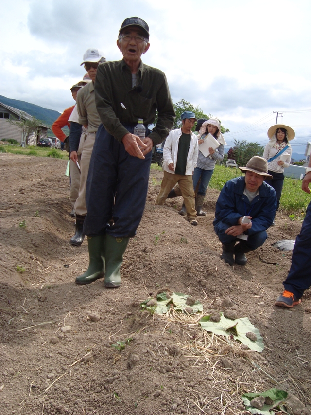 木村秋則さんが不在の時間は、講師の代理をさせて頂くことがあり、その経験がより自然栽培の知識となりました。 写真は、人参の収穫:品種による収穫の違いの説明。