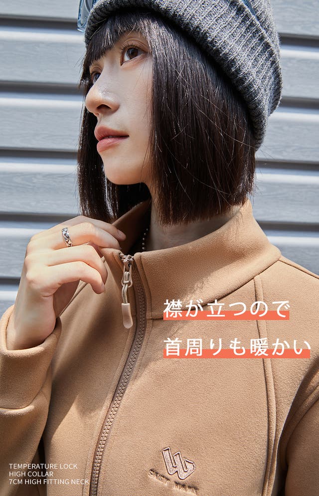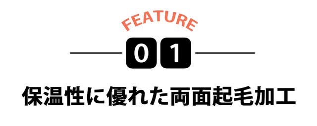- 厚手で上質な生地とふんわり起毛加工を組み合わせ。冷風を遮って、暖かさをしっかりキープ。