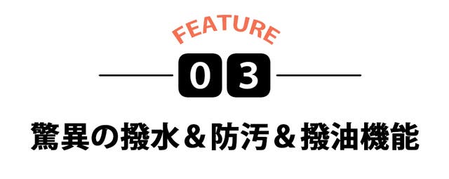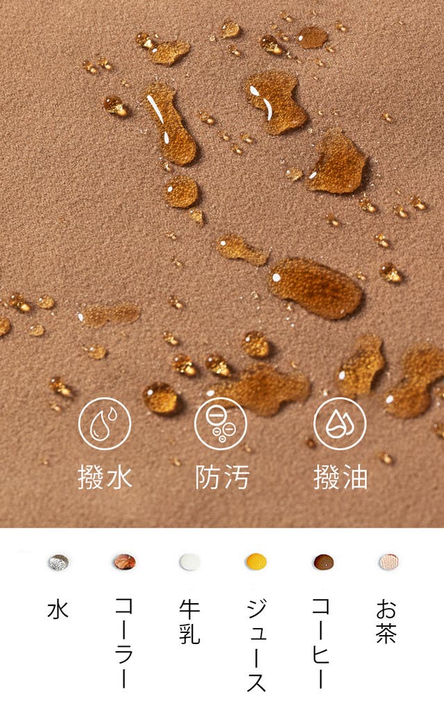撥水&防汚加工により、水や液体が生地の表面を滑り落ち、服が濡れたり汚れたりする心配はありません。
