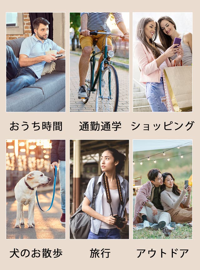 おうちでのくつろぎ、通勤通学、友達とのランチ、ショッピング、愛犬とのお散歩、旅行、アウトドアなど、どんな活動にも対応できます。