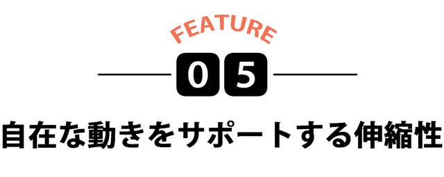 どの方向にも柔軟に伸び縮みするため、腕を上げたり、体を曲げたり、座ったり立ったりする際に、無理な力がかからず、ストレスフリーな着用が可能です。