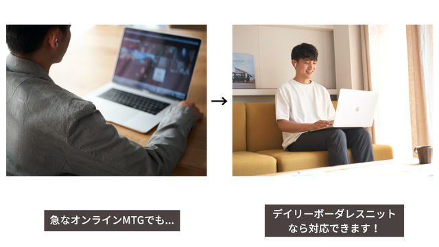自宅での急な仕事のオンラインミーティングや、プライベートのやりとりもこれ一枚で違和感なく過ごせます。