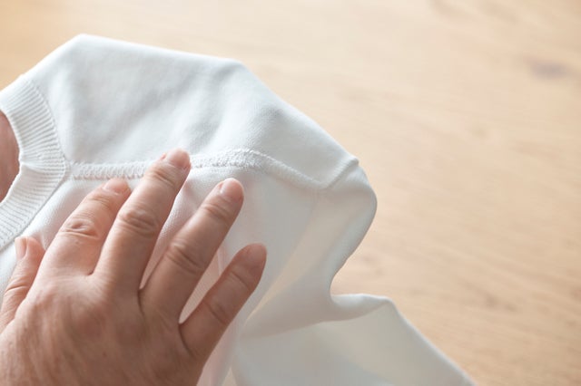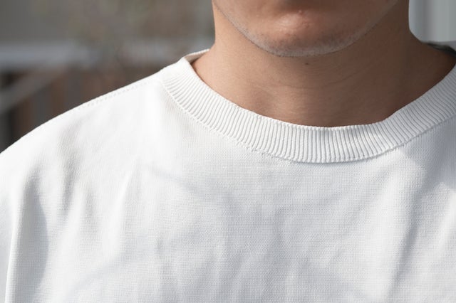 - 在宅勤務中、急なオンラインミーティングでも失礼のない正装として着用できる白ニット