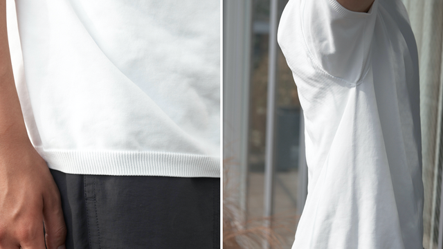 このニットプルオーバー「DAILY BORDERLESS KNIT」には、糸に銀イオンを練りこんだ十字断面構造のAngelon® Silver(エンジェロン®シルバー)を使用しています。糸の中に銀イオンを含有させることで、検査機関でも実証された高い抗菌性を実現しています。特に部屋干し時の臭いの原因菌に効果を発揮します。また十字断面構造による毛細管現象で、吸水速乾性に優れています。
