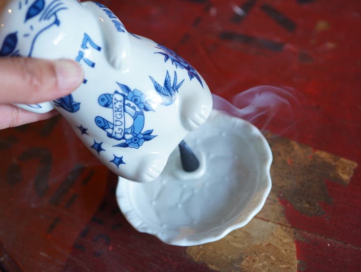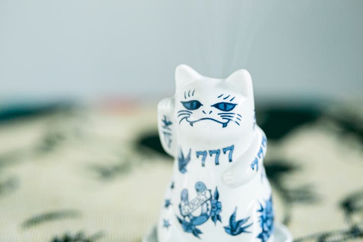 日本の縁起物「招き猫」を、ただの置物ではなく、日常に寄り添うお香立てとして生まれ変わらせました。
