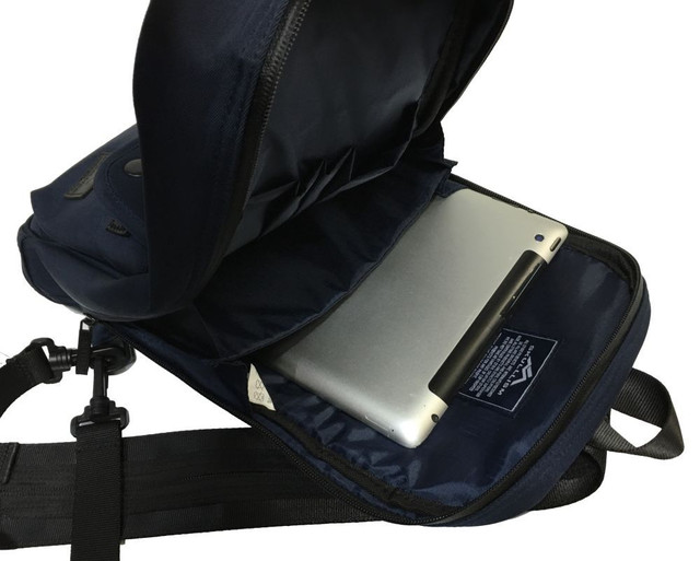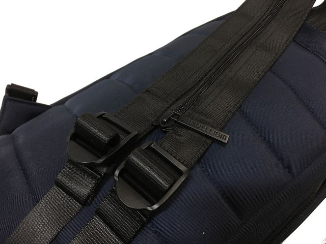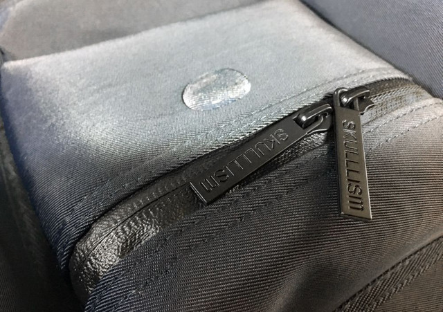 本プロダクトは、今までのSKULLLISMにて使用していた撥水素材ではなく、独特の艶ときめ細かさを兼ね備えた撥水効果の高い素材を初めて使用し、さらにそれぞれ収納スペースにクッション素材を使用したことでガジェットを持ち歩くのに最適なモデルになっております。