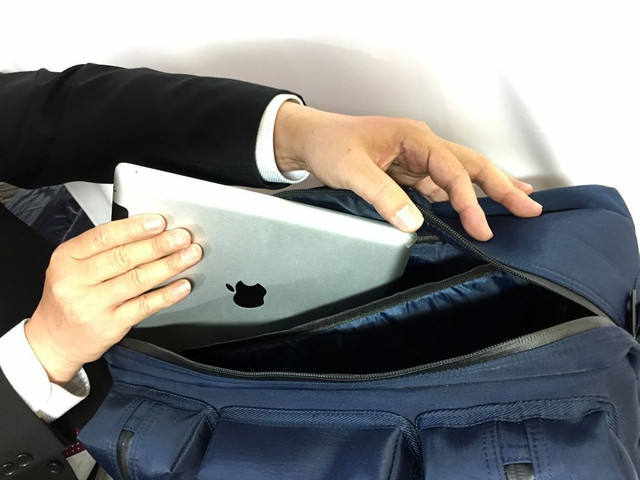 すべてのポケットにクッションが入っているので、多くのガジェットを持ち歩いていても安心!