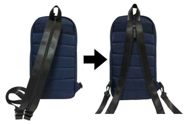 5.肩紐のファスナーを開けるとリュックとしても使える2WAY仕様