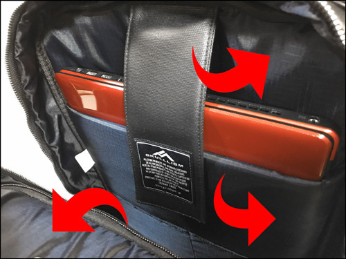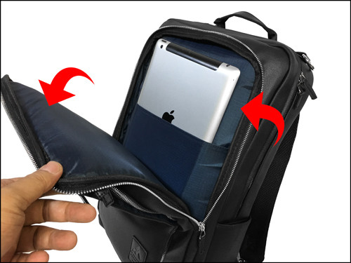 すべてのポケットにクッションが入っているので、ガジェットを持ち歩いていても安心!