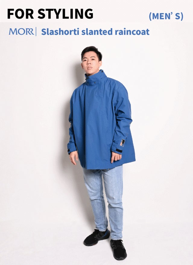 防水加工が施されたナイロン生地と3層の防水設計を採用し、極端な暴風雨ももろともしない、ミニマルなフォルムと防水機能を見事に両立させた超高品質レインウェア「MORR Slashorti」です。手首、まえ、うしろ、リュックまでしっかり守るための防水設計で、水も汚れも寄せ付けなく、雨の日は楽しくなります。防水、通気がバッチリのレインパンツ「Expansion」を合わせて着用すると、豪雨での自転車通勤も快適に。専用ケースにレインウェアを収納することが出来るので持ち運びもラクラクです! 先進的な技術によって高品質の衣服を提供し続けてきたレインウェアブランド「MORR」が、実に9年間もの研究の末にたどり着いた令和時代の新定番レインウェア「MORR Slashorti(モーア スラーショッティ)」。これからの雨の日のお供にぜひお試しください。
