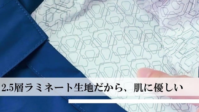 2.5層の防水ラミネートを採用し、見た目が綺麗で肌にも優しいです。