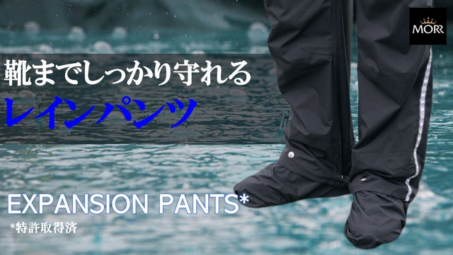 エキスパンション パンツ(Expansion pants)があれば豪雨だってへっちゃら。台湾で特許取得済の拡張式靴カバーで、雨対策は脚まで抜かずにしっかり守れます。自転車やバイク通勤をされる方にとっては、有難い逸品です!