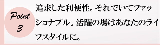- 追求した利便性。それでいてファッショナブル。活躍の場は貴方のライフスタイルに。