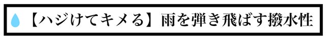 レインウェアと同じ撥水剤でコーティング加工しているため、雨水を丸めて落とせます。