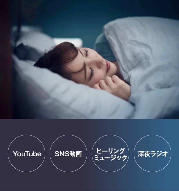 YouTubeやSNS動画、ヒーリングミュージックや深夜ラジオなど、あなただけのおやすみ前のルーティンをストレスなくお楽しみください。