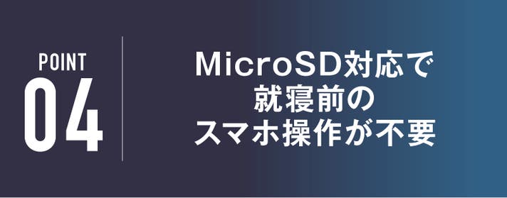 さらに、一晩中デバイスをつけっぱなしにしたくない方のために自動オフタイマーを搭載し、スマートフォンに縛られないようにBluetoothとSDカード再生の両方に対応させました。