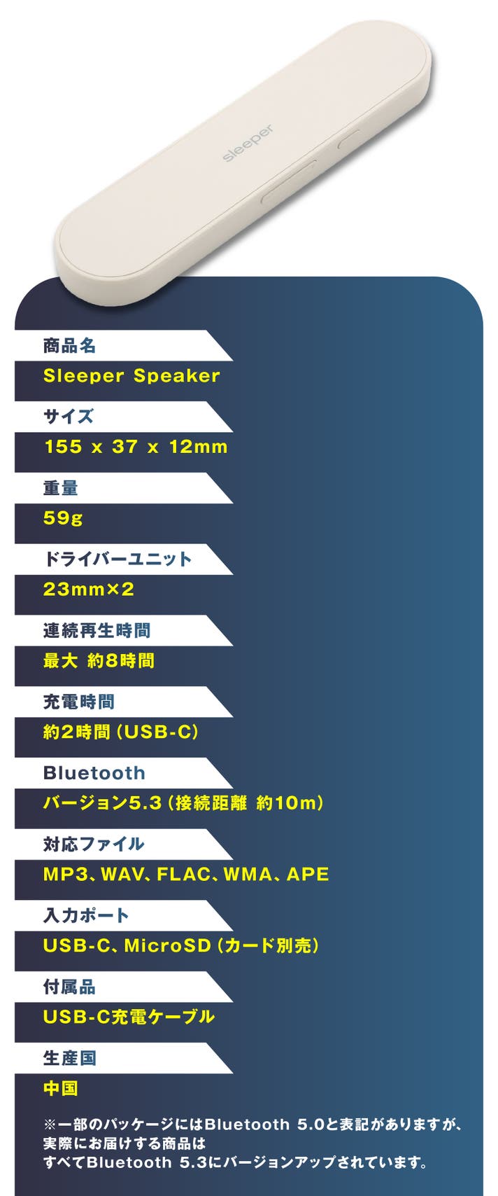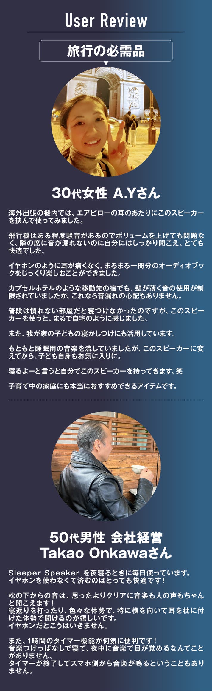Sleeper Speaker は単なるガジェットではありません。寝る前のひとときをより穏やかに、より心地よく過ごしていただくために生まれた製品です。