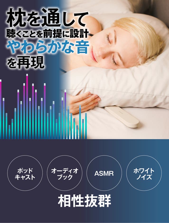 - 【新たな睡眠音響体験】枕の下に置いて自分にだけ聴こえる。耳に負担をかけない骨伝導スピーカー