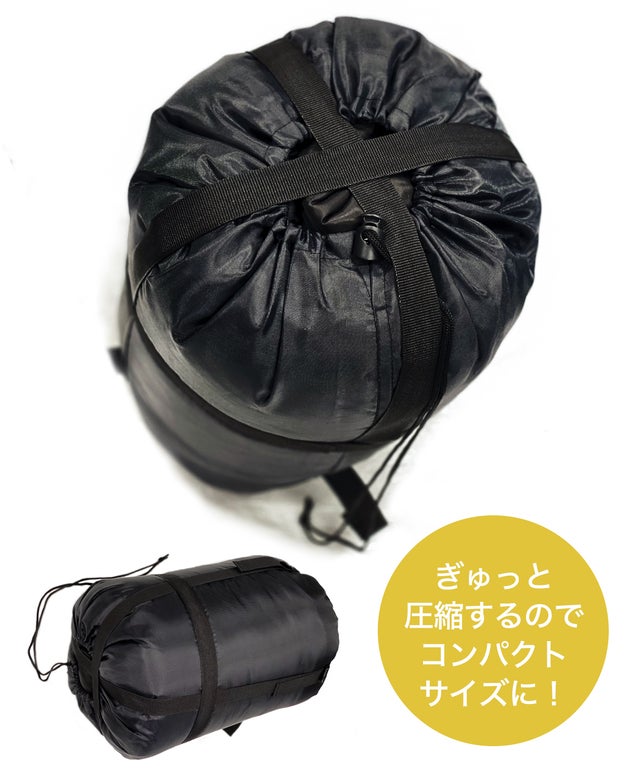 ダウン寝袋と比較し、化繊寝袋は暖かさを追求するとどうしても体積が大きくなります。コンプレッションベルトを装備することで、強く圧縮することが可能となりました。