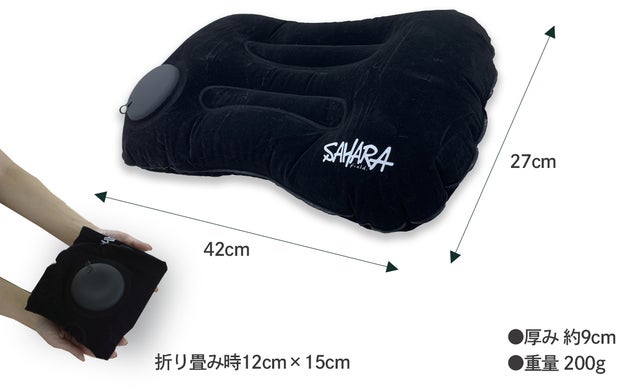 この枕にも徹底的にこだわりました。寝袋の収納袋に一緒に入れておけるサイズで、キャンプだけなく防災グッズとしても便利。