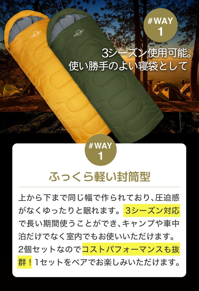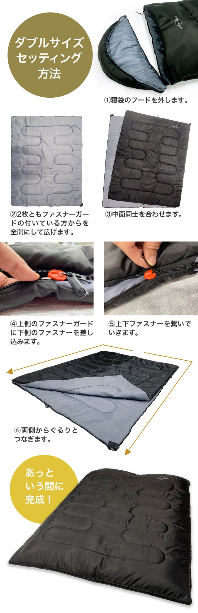 - 寝袋2個組なのでダブルサイズに!ファミリーで、カップルで、暖かく眠れます!