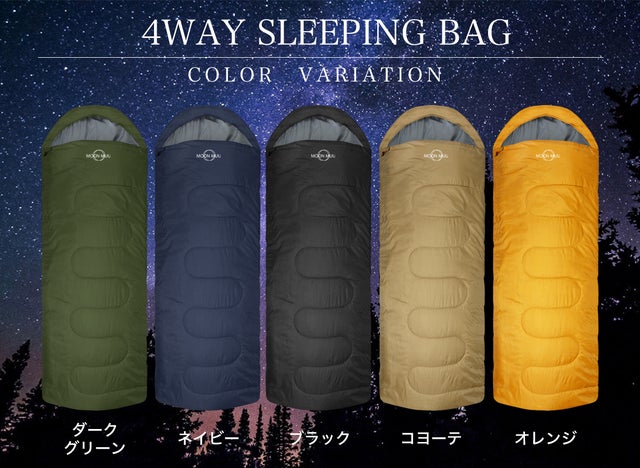 ※寝袋のカラーはダークグリーン・ネイビー・ブラック・コヨーテ・オレンジの中から4個分をお選びいただきます。