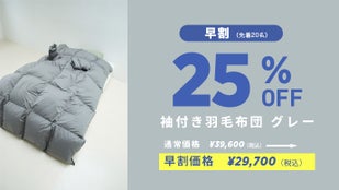 2月上旬発送予定 袖付き羽毛布団(グレー)早割25%OFF(先着20名)