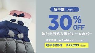 1月中旬発送予定 袖付き羽毛布団(グレー)&カバー 超早割30%OFF(先着5名)