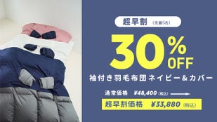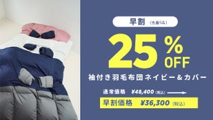 1月中旬発送予定 袖付き羽毛布団(ネイビー)&カバー 超早割30%OFF(先着5名)