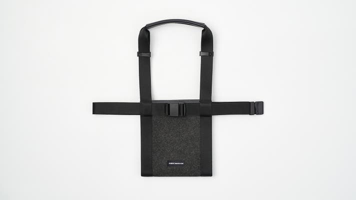 ハーネス生地にはメランジフェルトを使用しており、収納ポケット付きのため、スマートフォンなど様々な小物をすっきり収納できるので、とても便利です。