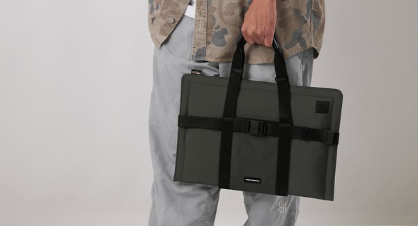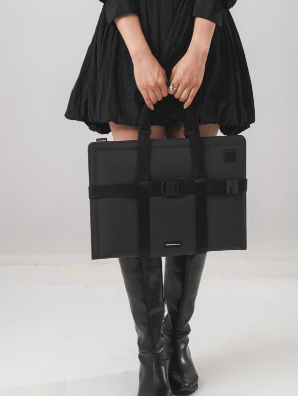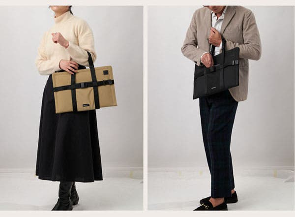 自由にサイズ調整してバッグとしてご使用いただけます。マグネットバックルとハンドルのクリップを活用し、スリーブやポーチに合わせてサイズを自由に調節できます。