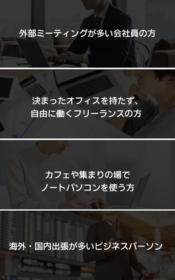 ◎出張やミーティングが多く、ノートブックを持ち運ぶ機会の多いビジネスマン