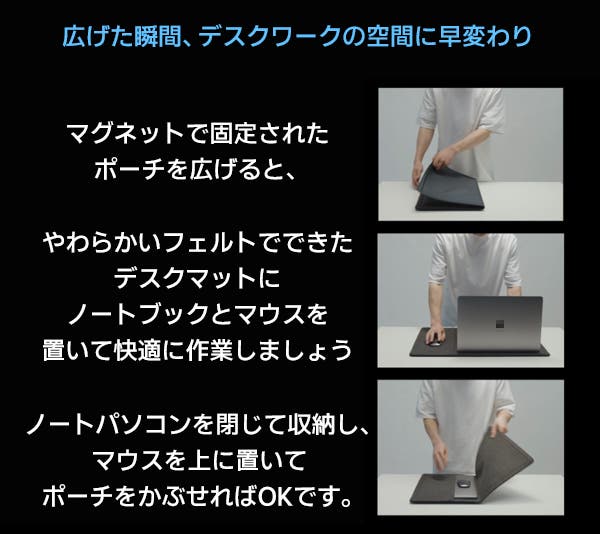 広げれば『デスクマット』閉じれば『スリーブケース』に!