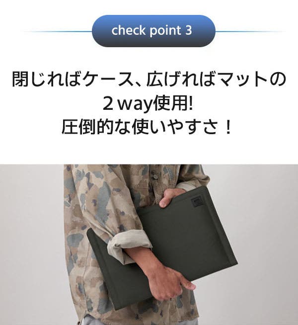 - 閉じればケース、広げればマットの2way!専用ハーネスを装着すれば、バッグにも大変身!